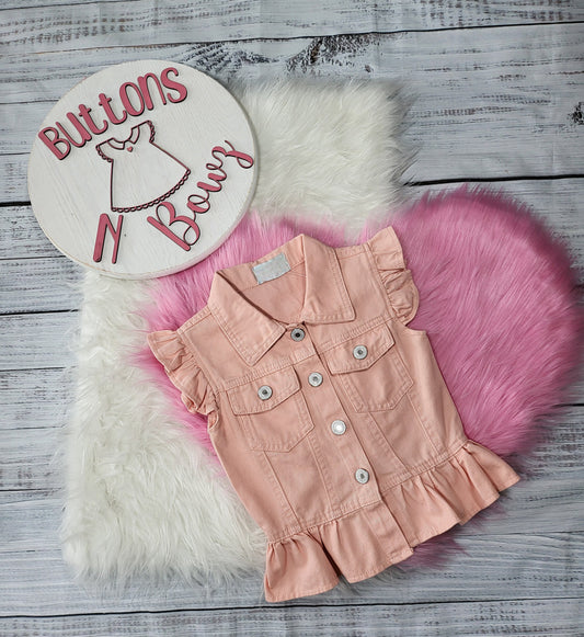 Pretty in Pink Jean Vest Pink Denim Vest Baby | Ruffle Trim Jean Vest for Baby Girls | Luxury Boutique Outfit