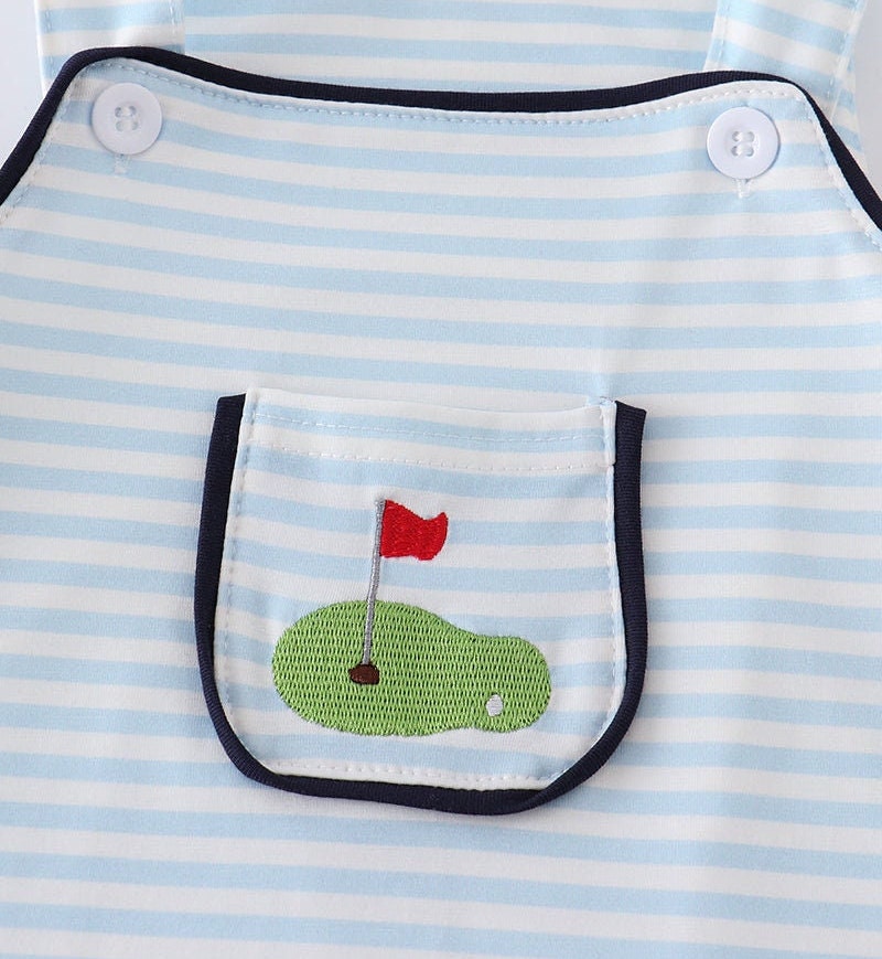 Who's ready for a fun day of Golfing! This super cute embroidered Jon-Jon is perfect for any little Golfer in training.